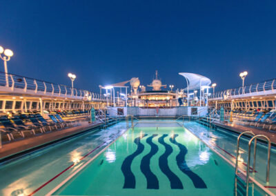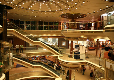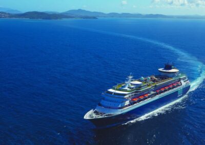São navios magníficos, hotéis de luxo sobre o mar, parando intermitentemente em belíssimos locais,